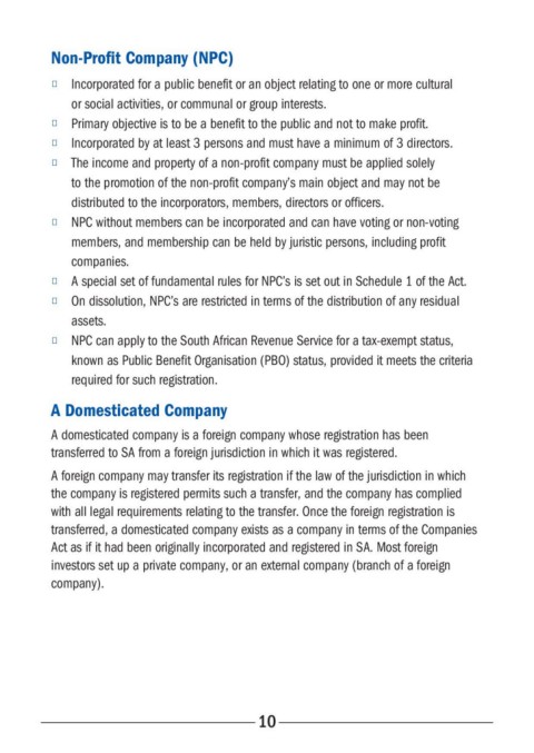 ■ NPC can apply to the South African Revenue Service for a tax-exempt status,