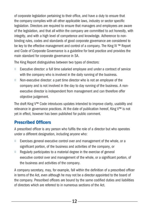 the company. Prescribed officers are bound by the same codified duties and liabilities