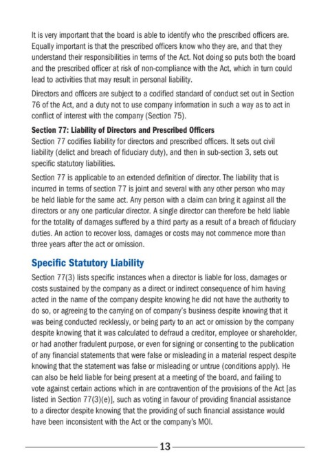 Section 77: Liability of Directors and Prescribed Officers