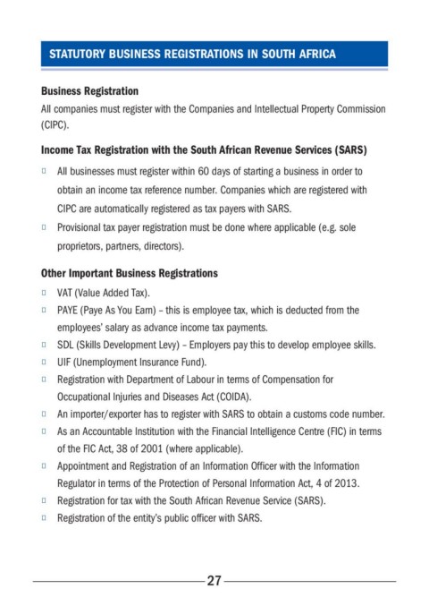 STATUTORY BUSINESS REGISTRATIONS IN SOUTH AFRICA