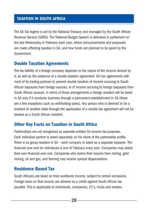 The SA Tax regime is set by the National Treasury and managed by the South African