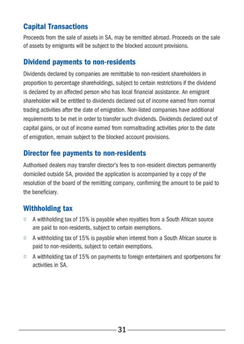 ■ A withholding tax of 15% is payable when interest from a South African source is