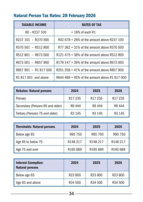 Natural Person Tax Rates: 28 February 2026