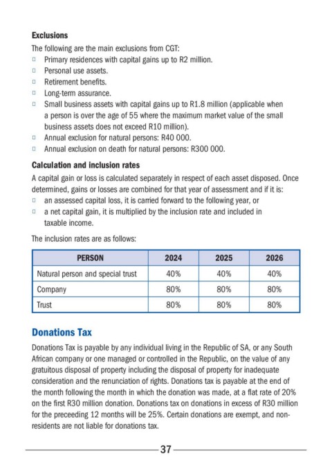 ■ Annual exclusion for natural persons: R40 000.