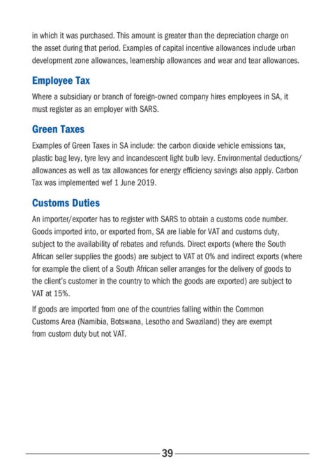 Goods imported into, or exported from, SA are liable for VAT and customs duty,