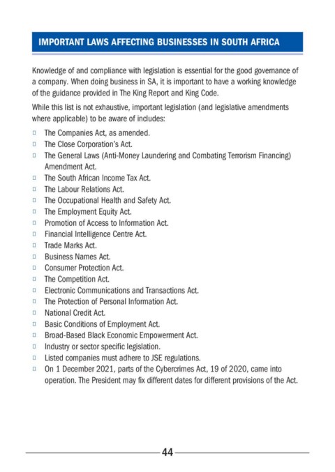 IMPORTANT LAWS AFFECTING BUSINESSES IN SOUTH AFRICA