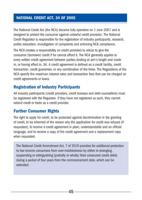 The National Credit Amendment Act, 7 of 2019 provides for additional protection