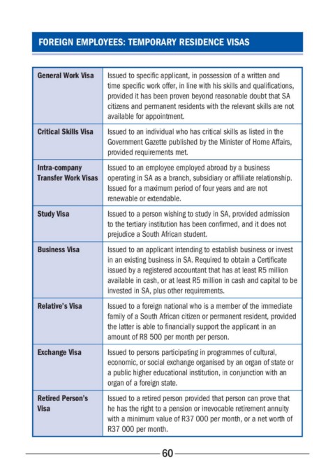 FOREIGN EMPLOYEES: TEMPORARY RESIDENCE VISAS