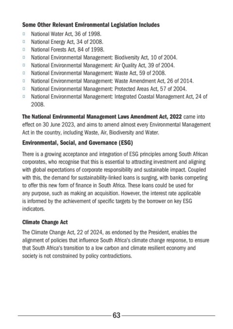 Act in the country, including Waste, Air, Biodiversity and Water.