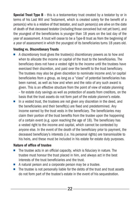 Special Trust Type B – this is a testamentary trust created by a testator by or in