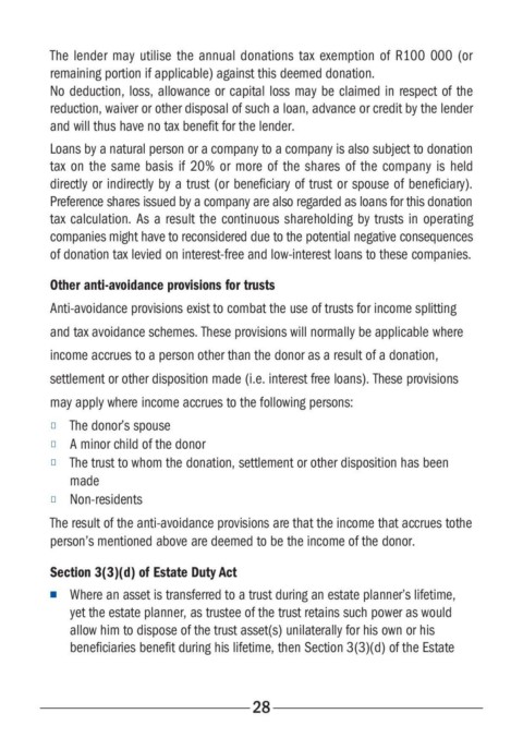 The lender may utilise the annual donations tax exemption of R100 000 (or