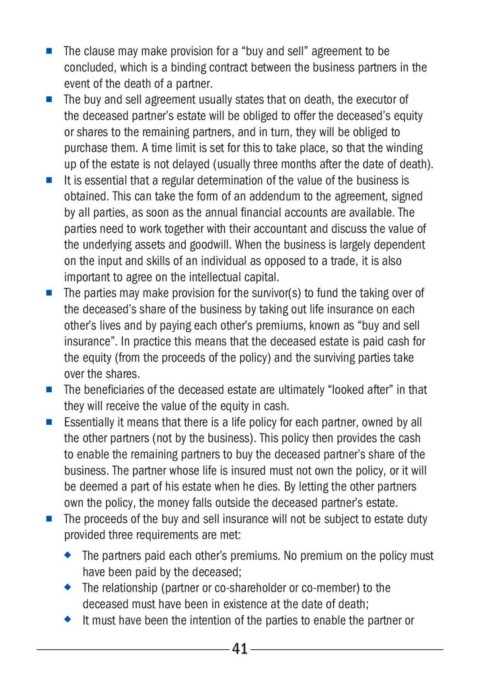 n The buy and sell agreement usually states that on death, the executor of