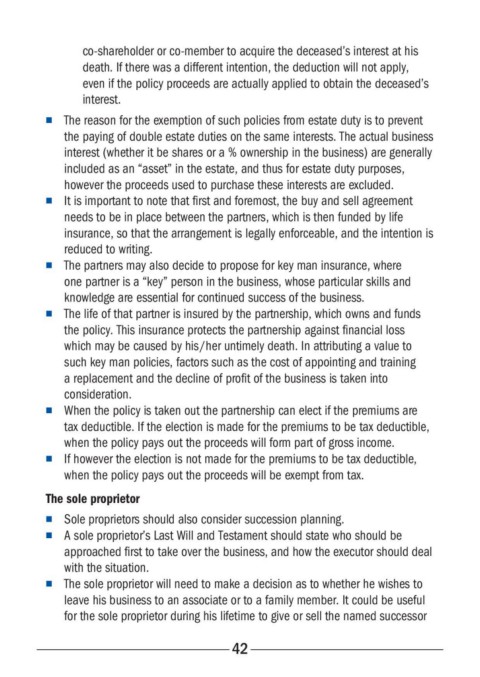 n Sole proprietors should also consider succession planning.