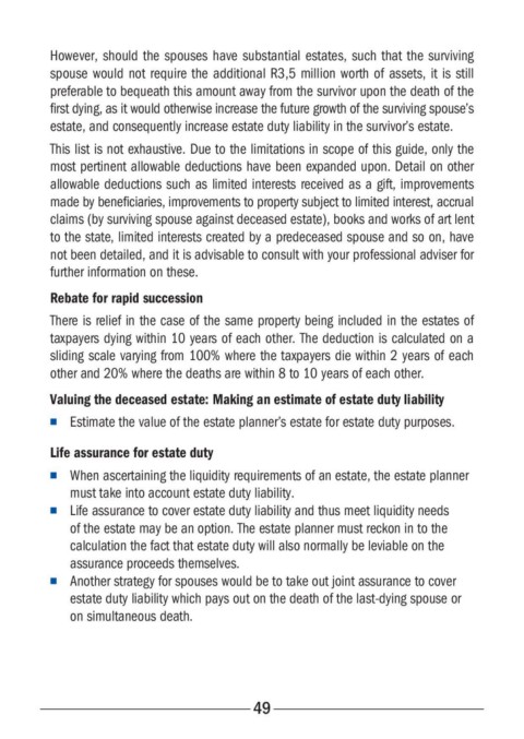 n Life assurance to cover estate duty liability and thus meet liquidity needs