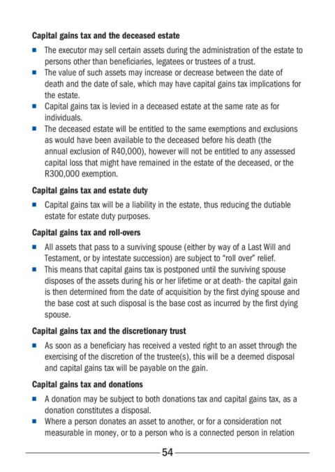 n Capital gains tax is levied in a deceased estate at the same rate as for