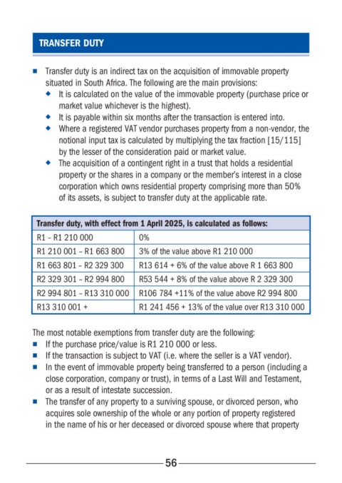 n Transfer duty is an indirect tax on the acquisition of immovable property