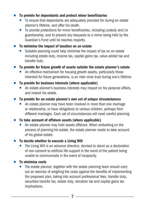 n To provide for dependants and protect minor beneficiaries