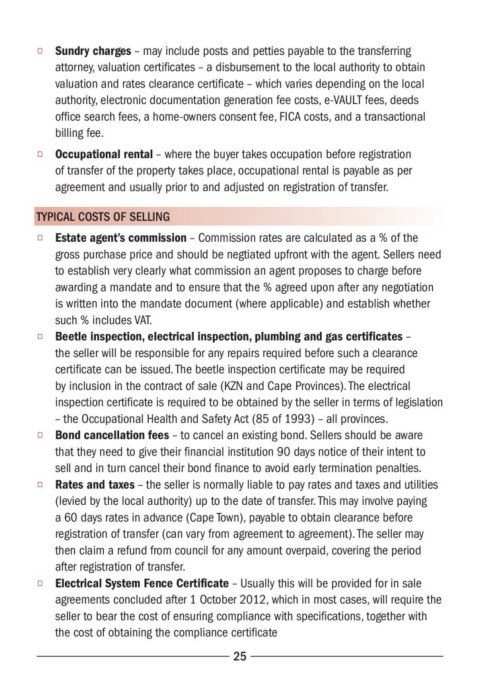 by inclusion in the contract of sale (KZN and Cape Provinces). The electrical