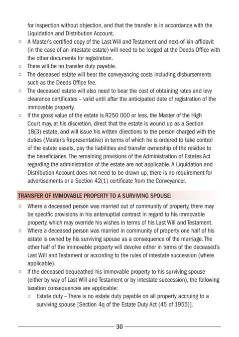 TRANSFER OF IMMOVABLE PROPERTY TO A SURVIVING SPOUSE: