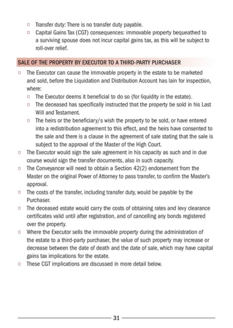 ◆ The costs of the transfer, including transfer duty, would be payable by the