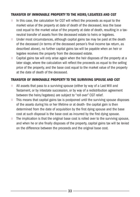 TRANSFER OF IMMOVABLE PROPERTY TO THE HEIRS/LEGATEES AND CGT