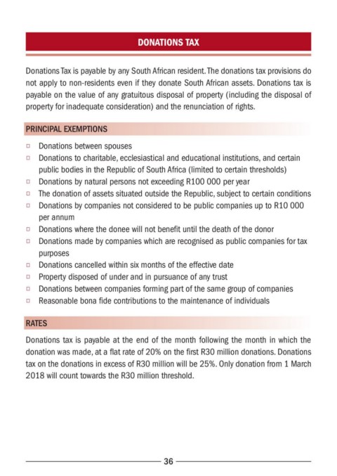 donation was made, at a flat rate of 20% on the first R30 million donations. Donations