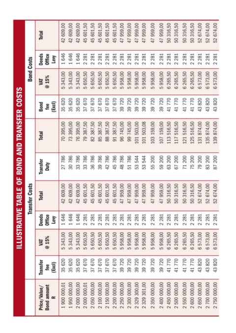 Bond Costs Deeds VAT Office @ 15% Levy 1 646 5 343,00 1 646 5 343,00 1 646 5 343,00 2 281 5 650,50 2 281 5 650,50 2 281 5 650,50 2 281 5 650,50 2 281 5 650,50 2 281 5 958,00 2 281 5 958,00 2 281