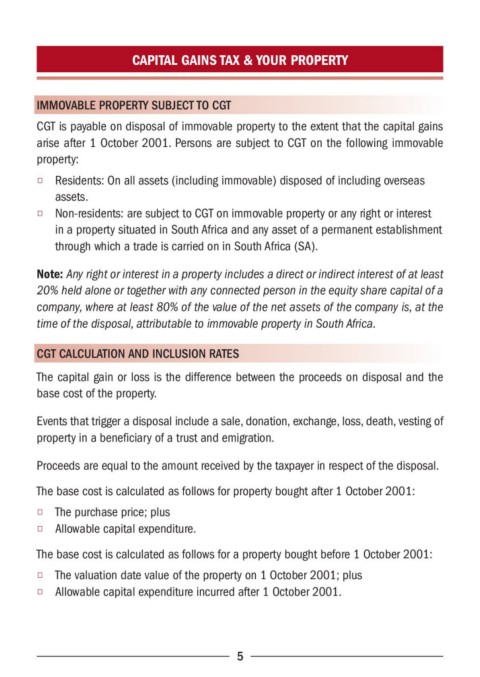 arise after 1 October 2001. Persons are subject to CGT on the following immovable