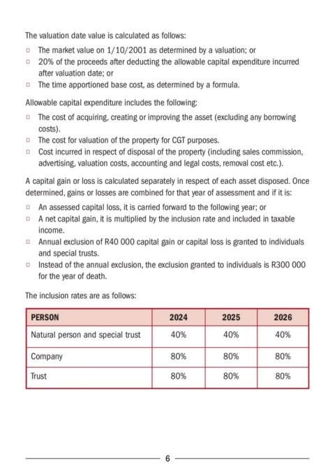 ◆ Annual exclusion of R40 000 capital gain or capital loss is granted to individuals