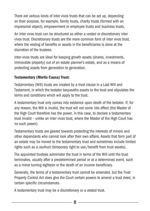 A testamentary trust may be a discretionary or a vested trust.