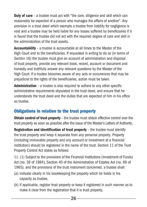 Accountability – a trustee is accountable at all times to the Master of the