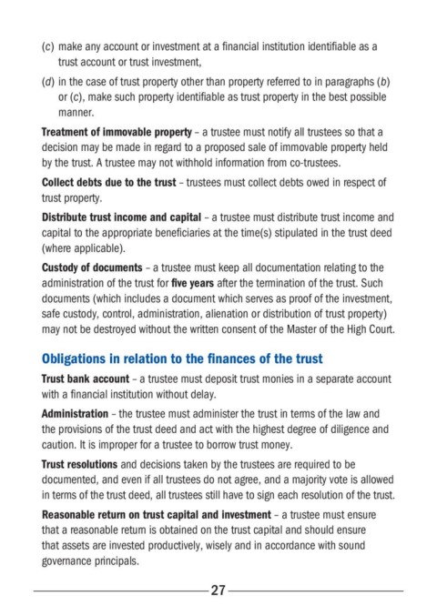 Obligations in relation to the finances of the trust