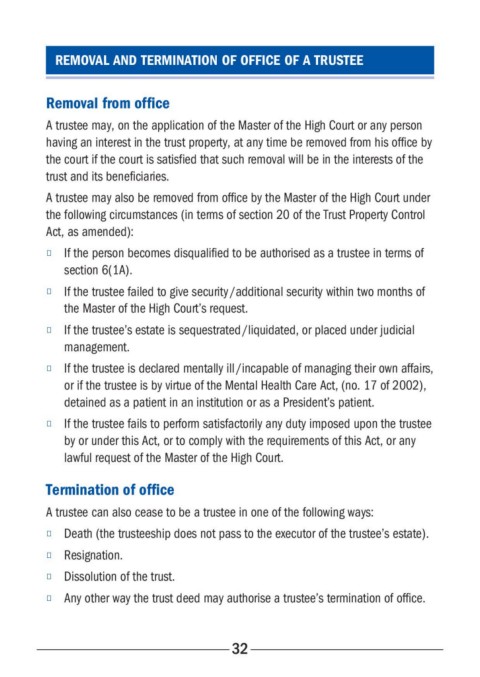 ■ If the person becomes disqualified to be authorised as a trustee in terms of