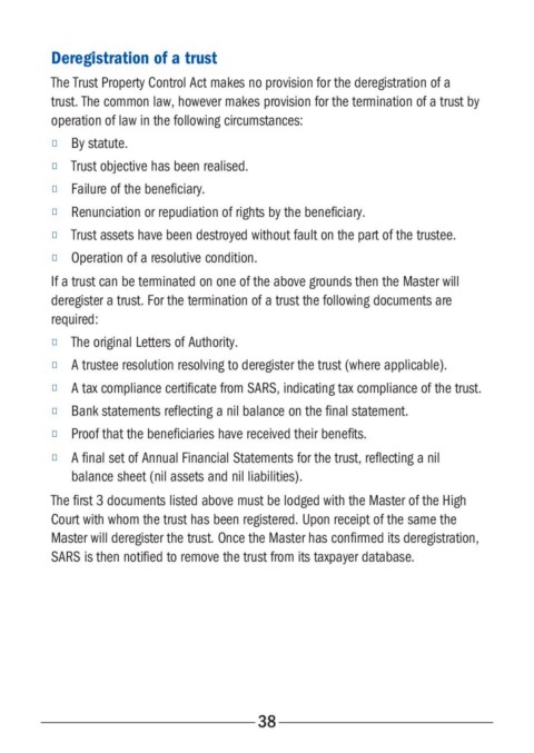 deregister a trust. For the termination of a trust the following documents are