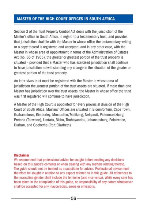 Master’s office in South Africa, in regard to a testamentary trust, and provides